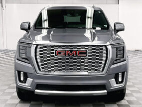 Four Wheel Drive, 3rd Row Seating, 2nd Row Bucket Seats, Panoramic Roof, 22 Inch Wheels, Yukon Denali 4x4 - Pano Roof - Htd/Cooled Leather - 22'' Wheels, 4D Sport Utility, 4WD, Satin Steel Metallic, 10-Way Power Seat Adjusters, 15" Diagonal Multi-Color Head-Up Display, 2 Presets For Outside Rearview Mirrors, 3.23 Rear Axle Ratio, 3rd Row 60/40 Power-Folding Split-Bench Seat, 4-Wheel Disc Brakes, ABS brakes, Air Conditioning, AM/FM radio: SiriusXM with 360L, Apple CarPlay/Android Auto, Auto High-beam Headlights, Auto-dimming door mirrors, Auto-dimming Rear-View mirror, Automatic Emergency Braking, Automatic temperature control, Bodyside moldings, Bose 14-Speaker Surround w/CenterPoint, Bright Front & Rear Door Sill Plates, Bumpers: body-color, Chrome Door Handles w/Body-Color Strip, Compass, Delay-off headlights, Dual Exhaust System, Dual-Pane Panoramic Power Sunroof, Floor Console, Following Distance Indicator, Forward Collision Alert, Front & Rear Park Assist, Front Bucket Seats, Front Center Armrest, Front dual zone A/C, Front fog lights, Front Pedestrian Braking, Fully automatic headlights, Galvano Bodyside Moldings, Garage door transmitter, Hands-Free Power Programmable Rear Liftgate, HD Surround Vision, Heads-Up Display, Heated & Ventilated Driver & Front Passenger Seats, Heated 2nd Row Outboard Position Seats, Heated door mirrors, Heated Steering Wheel, Hill Descent Control, Illuminated entry, Inside Rear-View Auto-Dimming Mirror, IntelliBeam Automatic High Beam On/Off, Lane Change Alert w/Side Blind Zone Alert, Lane Keep Assist w/Lane Departure Warning, Leather steering wheel, Low tire pressure warning, Magnetic Ride Control Suspension, Memory Driver Seat, Outside Heated Power-Adjustable Mirrors, Outside temperature display, Panic alarm, Perforated Leather Seating Surfaces, Power door mirrors, Power driver seat, Power Liftgate, Power Release 2nd Row Bucket Seats, Power steering, Power Tilt & Telescopic Steering Column, Power windows, Preferred Equipment Group 5SA, Rain sensing wipers, Rear air conditioning, Rear Cross Traffic Alert, Rear Pedestrian Alert, Rear window defroster, Rear window wiper, Remote keyless entry, Safety Alert Seat, Speed control, Split folding rear seat, Steering wheel memory, Steering wheel mounted audio controls, Telescoping steering wheel, Tilt steering wheel, Traction control, Turn signal indicator mirrors, Universal Home Remote, Variably intermittent wipers, Wheels: 22" x 9" Bright Machined Aluminum, Wireless Charging. Priced below KBB Fair Purchase Price! Odometer is 8199 miles below market average! Satin Steel Metallic 2022 GMC Yukon Denali 4x4 - Pano Roof - Htd/Cooled Leather - 22'' Wheels 4WD 10-Speed Automatic with Overdrive